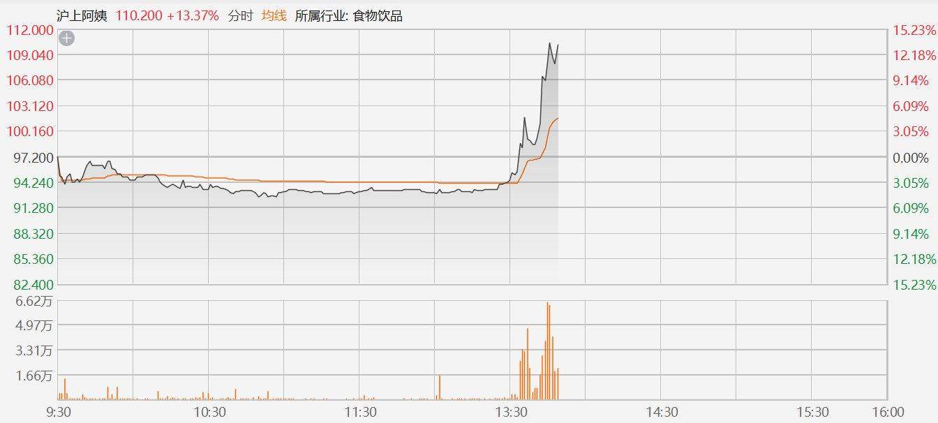 Group 1 - The stock of "沪上阿姨" in the Hong Kong market has seen a significant increase, rising over 13% at one point and currently up by 12% [2]