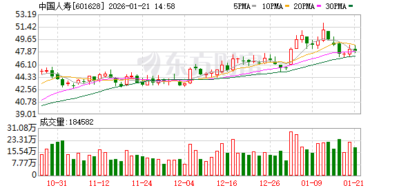 开源证券认为,个险和银保开门红均超预期,负债和资产两端催化有望延续。花旗发布研报称,展望 2026年,该行预期寿险行业将迎来财富重新配置带来的历史性机遇,因零售投资者为大量到期的银行存 款寻求更高的再投资收益。在2026年预测中,花旗偏好中国人寿及中国平安等行业龙头。 中国人寿 中国平安 中国太保 中国人寿 中国平安-R 中国平安 分时图 日K线 周K线 月K线 48.29 0.77 1.62% 2.78% 1.85% 0.93% 0.00% 0.93% 1.85% 2.78% 46.20 46.64 47.08 47.52 47.96 48.40 48.84 09:30 10:30 11:30/13:00 14:00 15:00 0 18万 36万 54万 消息面上,据报道,2026年开年第一周,上市险企在银保渠道的保费收入表现亮眼。截至1月8日,中国 人寿、平安人寿、人保寿险同比增长均实现翻倍。与此同时,个险期缴保费普遍实现同比30%以上的增 长。此外,1月19日,中国太平抛出了上市险企中的首份业绩预告,公司预计2025年度净利润同比大幅 增长215%至225%。 内险股盘中拉升,截至发稿,中国人寿(60 ...