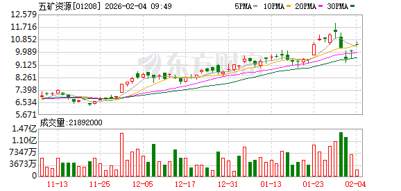 每经AI快讯,2月4日,港股有色金属板块反弹,五矿资源涨超5%,江西铜业股份涨超3%,赤峰黄金涨 近3%,紫金黄金国际、中国宏桥涨近2%。 (文章来源:每日经济新闻) ...