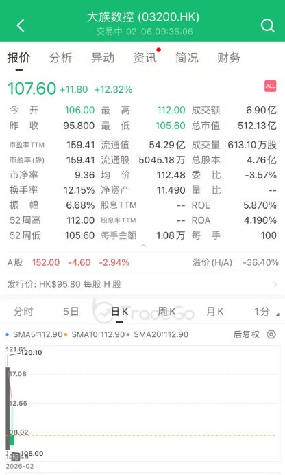 大族数控(3200.HK)今日上市,开盘涨超10%