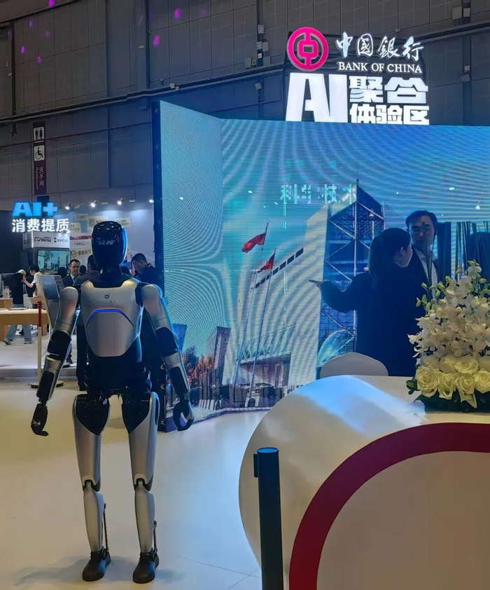 AI交互丰富游客体验 探访今年的银行展台,科技感和未来感无疑是最具冲击力的直观感受。今年是人工智能飞速发展的一 年,AI交互等智能体验也被银行搬进了展厅,通过进博会的窗口,向世界展现中国的科技力量,各类 交互和打卡活动更是大大提升了观众的参与感。 11月初,申城秋意渐浓,第八届中国国际进口博览会(下称"进博会")如期而至。155个国家、地区和 和国际组织参与,4108家企业参展,进博会的"朋友圈"持续扩大。 与之相伴的是中资银行逐年精进的金融服务。金融支持犹如"四叶草"的根系,看似无形却有力:每一场 奇妙的展台体验、每一笔丝滑的数字支付、更加顺畅的资金跨境流动、逐年迭代的系统化金融服务方 案……中资银行正从简单的服务者成为进博会的共建者。 今年,银行展台有哪些"金"点子?中资银行又为进博会提供了哪些特别的业务支持?跟随《国际金融 报》记者的脚步,一同探寻进博会中的银行力量。 走进位于技术装备展区的中国银行AI聚合体验区,宇树科技的机器人正自如地"逛展",智元机器人的机 器狗也随处漫步。这是中国银行焕新升级的人工智能体验区4.0版本。"中国银行已经连续第四年作为联 合主办方支持打造进博会的人工智能体验区,今年进 ...