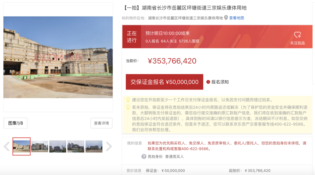 长沙大王山恒大童世界项目三幅地块被法拍:17.2万平米,起拍价3.53亿元