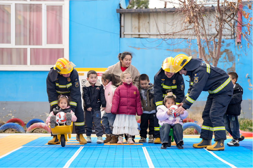 11月13日,新疆维吾尔自治区伊犁哈萨克自治州伊宁县巴依托海镇中心幼儿园上萨克于孜村分园迎来了一批特别的"蓝 朋友"——新疆伊犁州消防救援支队的指战员。指战员们在幼儿园刚刚铺设的新操场上,为孩子们带来了一堂生动有趣 的消防安全启蒙课。 今年11月9日是第三十四个全国消防日,11月是消防宣传月,主题为"全民消防、生命至上——安全用火用电"。据了 解,开展趣味活动的新操场是刚刚建成的全国第4283座美团乡村儿童操场,这已经是在中国消防公益支持下捐建的第 四座乡村儿童操场。孩子们在获得全面、丰富的消防知识的同时,也能在快乐运动之中更健康地成长。 幼儿园园长乔旭霞表示,幼儿园的旧操场设施陈旧、地面不平整,不仅限制了孩子们的户外活动空间,更存在绊倒、 磕碰等安全隐患,消防疏散演练也因场地受限难以达到理想效果。新操场平整防滑的地面、科学划分的活动区域,既 消除了安全风险,又让孩子们有了充足的户外活动空间,还能让孩子们在模拟疏散、逃生避险等训练中能更直观、安 全地掌握消防知识,为师生开展安全教育和户外活动提供了良好的条件。 新疆伊犁州消防救援的"蓝朋友"和小朋友进行户外游戏。摄影 佳音 新操场于消防宣传月期间完成铺设。摄影 ...