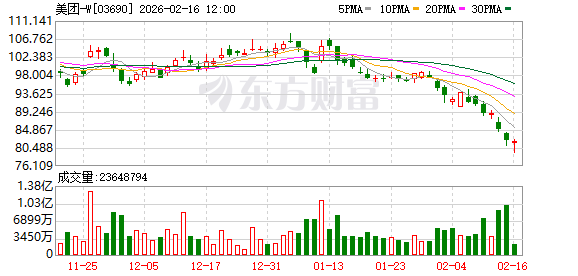 2月16日,美团港股股价出现下滑,股价一度跌破80港元。至收盘,美团股价为82.05港元,当天下滑 0.12%。美团此前发布公告,预期2025年录得亏损约人民币233亿元至人民币243亿元。 (文章来源:第一财经) ...