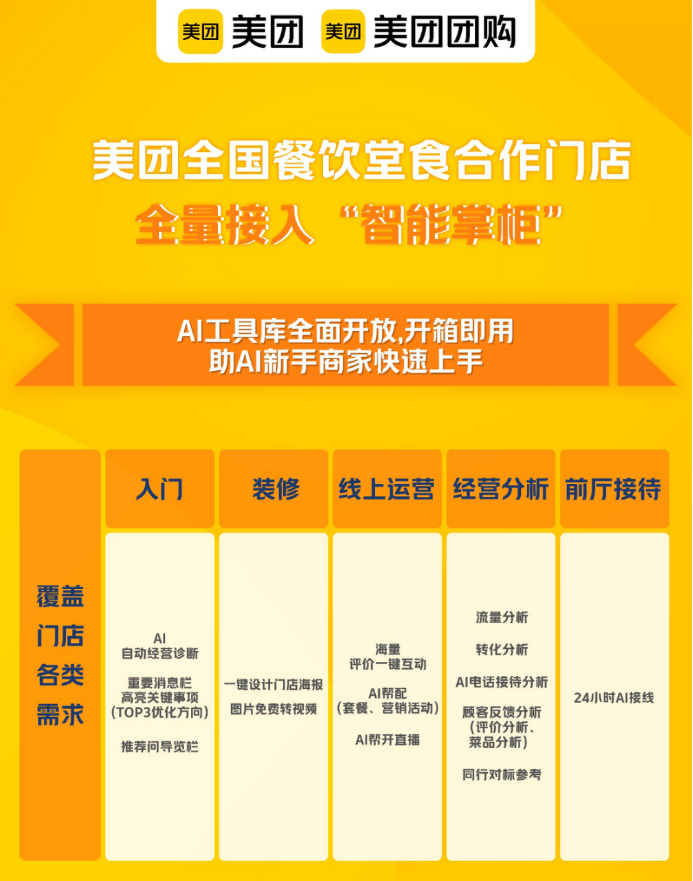 美团“智能掌柜”将启动“零门槛用AI”计划,提供整套AI工具库助餐饮商家从入门到精通