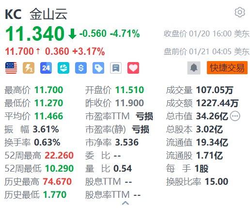 美股异动丨金山云盘前涨超3% 金山云星流平台完成战略升级