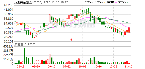 万国黄金集团 消息面上,近日,万国黄金集团公布,公司创始人、执行董事、主要股东兼董事会主席高明清于11月4 日己于公开市场通过由其全资拥有的捷昇投资有限公司购买公司合共101万股公司股份,平均价为每股 29.3408港元,涉资近3000万港元。增持后,捷昇持有公司2.83亿股股份,相当于已发行股本总额约 25.57%。董事会认为收购事项显示高明清对公司前景及增长潜力充满信心,以及其对公司的长期承 诺。 值得一提的是,11月10日,现货黄金突破4040美元/盎司,日内涨超1%。中信证券近期指出,从长期来 看,黄金仍然受益于逆全球化风险带来的全球流动性的扩张和偏好抬升。近期金价大幅波动主要由中美 经贸关系和降息预期驱动。展望明年,多种因素仍然很可能主导金价上行。中金公司(601995)研报表 示,展望明年,黄金有望延续涨势,结构性和周期性机会或有望继续共振。 分时图 日K线 周K线 月K线 33.76 0.14 0.42% 3.39% 2.26% 1.13% 0.00% 1.13% 2.26% 3.39% 32.48 32.86 33.24 33.62 34.00 34.38 34.76 09:30 10:30 ...