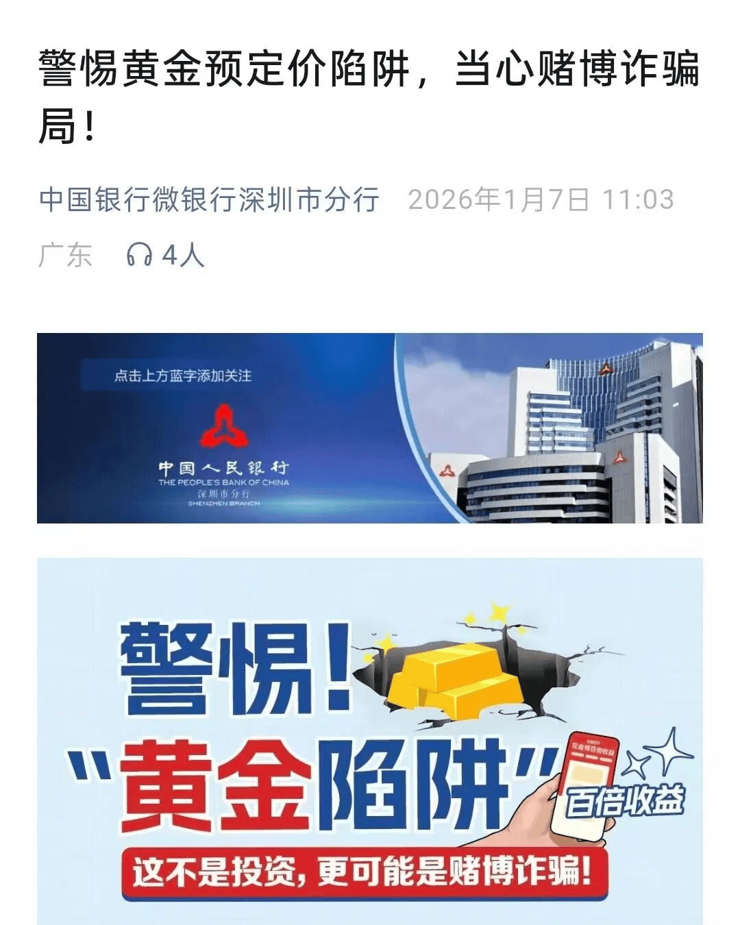 黄金首次突破4600美元关口,中国银行深圳分行紧急提示:警惕黄金预定价陷阱
