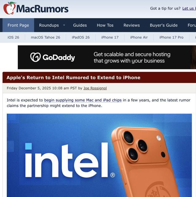 外媒:苹果产能再分散,英特尔将为iPhone供应芯片