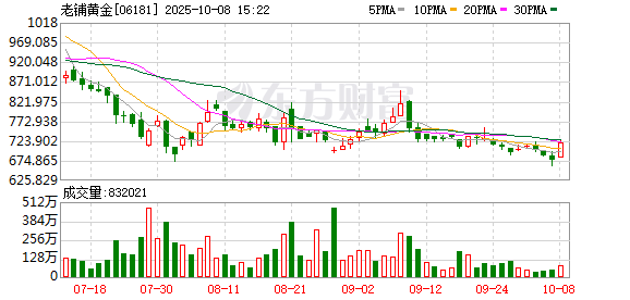 老铺黄金逆市涨近7% 公司在香港开设第三家门店 继续推进品牌国际化进程
