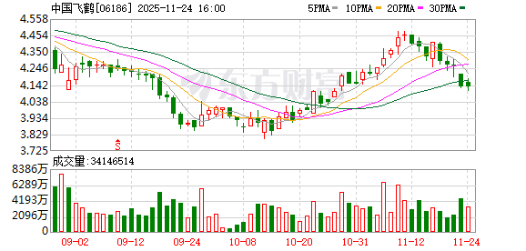 证券时报·数据宝统计,中国飞鹤在港交所公告显示,11月24日以每股4.110港元至4.170港元的价格回购 723.30万股,回购金额达2996.68万港元。该股当日收盘价4.130港元,平盘报收,全天成交额1.41亿港 元。 自10月24日以来公司已连续21日进行回购,合计回购1.77亿股,累计回购金额7.56亿港元。 其间该股累 计上涨2.74%。 中国飞鹤回购明细 | 日期 | 回购股数(万股) | 回购最高价(港元) | 回购最低价(港元) | 回购金额(万港元) | | --- | --- | --- | --- | --- | | 2025.11.24 | 723.30 | 4.170 | 4.110 | 2996.68 | | 2025.11.21 | 1230.00 | 4.200 | 4.140 | 5140.41 | | 2025.11.20 | 450.00 | 4.280 | 4.200 | 1906.80 | | 2025.11.19 | 535.00 | 4.280 | 4.240 | 2284.96 | | 2025.11.18 | 1030.00 | 4.370 | 4.280 ...