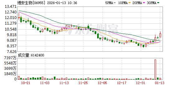消息面上,1月11日,博安生物发布公告,公司董事会欣然宣布,其自主研发的地舒单抗注射液(60mg) (代号BA6101)已获玻利维亚国家药品和卫生技术局(AGEMED)批准上市。BA6101为原研参照药Prolia的 生物类似药,在全球范围内Prolia广泛应用于骨质疏松症的治疗。BA6101的适应症与原研参照药相同。 BA6101基于本公司全球研发策略开发,并计划在全球多个国家及地区开展商业化。当前,BA6101在英 国的上市许可申请正处于审批阶段,本公司计划在欧洲、美国、日本等国家和地区提交上市许可申请。 智通财经APP获悉,博安生物(06955)涨超6%,截至发稿,涨6.28%,报9.98港元,成交额4988.45万港 元。 ...