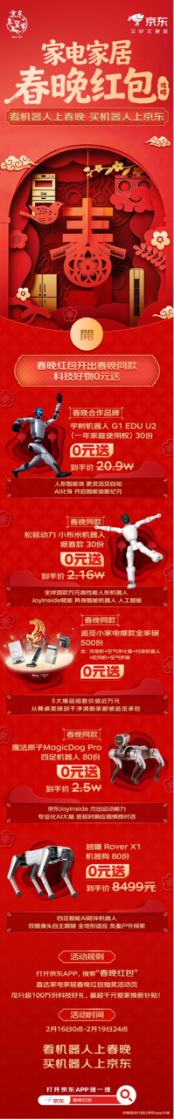 春晚点燃机器人租赁热潮 除夕当天京东“机器人租赁”搜索量环比增长3倍