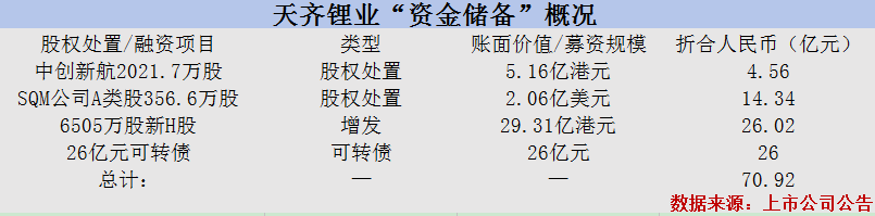 SQM股权处置、H股增发并行,天齐锂业储备71亿资金为哪般?