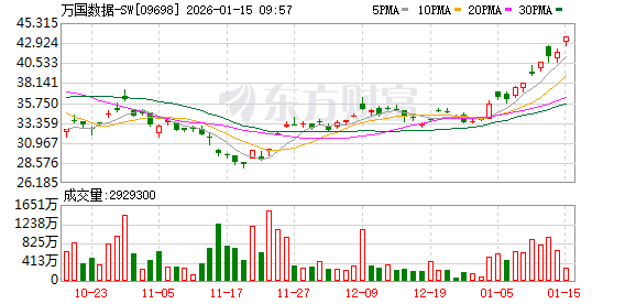 (文章来源:每日经济新闻) 每经AI快讯,万国数据-SW(09698.HK)涨超3%,截至发稿,涨3.3%,报43.18港元,成交额4713.47万港 元。 ...