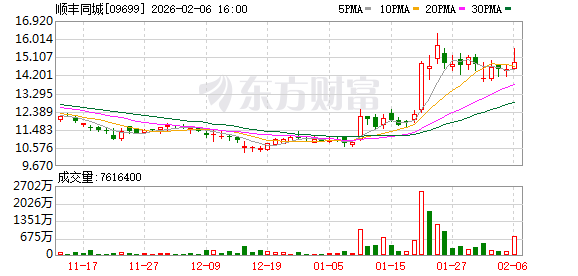 消息面上,顺丰同城发布盈喜,预计2025年度公司拥有人应占利润不低于2.38亿元,同比增幅超80%; 经调整净利润不低于3.76亿元,同比增长超158%;年度收入不低于220亿元,同比增长超40%。业绩增 长主要得益于即时零售市场扩容带来的配送需求激增、全品类全时段服务推动订单量健康增长,以及精 益化骑手运营和数智化技术提升规模效应。 顺丰同城(09699)早盘涨超5%,截至发稿,涨2.76%,报14.88港元,成交额1398.03万港元。 汇丰发布研报称,顺丰同城经调整净利润不低于3.76亿元,超过该行预期。虽然近期市场审视即时零售 平台,该行仍对顺丰同城的有机增长保持信心,预期2024至2027年收入年复合增长率达33%,相较于 2021至2024年期间为24%。 ...