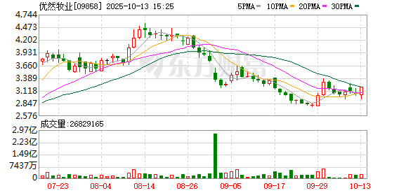国盛证券则认为,奶价有望走出下行周期,牵引牧业乳业机会。该行预计本轮奶价进入下行周期末端, 伴随存栏去化加速,有望迎来拐点,但在规模牧场占比提升背景下,奶价涨跌波动将显著平抑。对于牧 业公司而言,奶价降幅收窄及淘牛减亏,将带来报表端利润修复。 智通财经APP获悉,优然牧业(09858)涨超4%,截至发稿,涨4.61%,报3.18港元,成交额8268.43万港 元。 消息面上,中信建投证券指出,短期来看,由于需求端季节性回暖、供给端奶牛热应激导致产量减少等 因素影响,近两月奶牛存栏去化程度有所放缓。然而,短期因素不会对周期逻辑本身产生冲击,牛周期 之下肉奶共振的逻辑依旧没有改变。短期数据冲击之下的回调反倒成为此轮大的周期投机机会之下非常 好的布局时点。向后去看,伴随需求的季节性走弱,叠加相关牧场主体经营压力的持续加大,奶牛存栏 仍将维持去化趋势,原奶周期触底的拐点越发临近。 ...