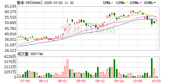 消息面上,据《21汽车·一见Auto》独家获悉,10月17日下午,蔚来召开了一次内部会议,会上,蔚来 创始人、董事长、CEO李斌分享了2025年四季度的个人VAU。此次会议上,李斌再次表示,四季度盈 利目标必须实现。李斌将这一目标拆解为三项具体行动:做好重点车型营销、供应链保供与降本、按时 交付高质量软件版本。 今年9月,蔚来公司交付新车34,749台,创下月度新纪录,同比增长64%。其中,蔚来品牌交付新车 13,728台;乐道品牌交付新车15,246台;firefly萤火虫品牌交付新车5,775台。开源证券此前指出,L90、 ES8有望驱动2025H2销量势能反转、2025Q4或为销量拐点。 蔚来-SW(09866)盘中涨超5%,截至发稿,涨4.77%,报52.75港元,成交额1.59亿港元。 ...