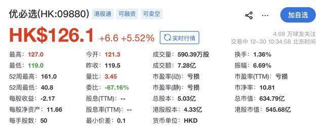 值得一提的是,近日,优必选新中标惠州市惠阳区人形机器人大湾区数据采集中心项目和呼和浩特市具 身智能科技中心设备采购项目,中标金额分别为5962万元、7780万元,总金额超1.3亿元。2025年,优 必选人形机器人订单总金额已近14亿元。 另外,12月26日,优必选第1000台Walker S2在柳州机器人超级智慧工厂下线,全年已实现了千台产 能。预计2026年,优必选人形机器人年产能将达万台规模。 瑞财经 吴文婷 12月30日,"人形机器人第一股"优必选股价上涨。截至发稿时,其报126.1港元,涨 5.52%,总市值约634.79亿港元。 | 优心选(HK:09880) 港股通 可融资 可卖空 | | | 加自选 | | --- | --- | --- | --- | | HK$126.1 +6.6 +5.52% | | C 实时行情 | 4.68 万球友关注 交易中 12-30 10:34:58 北京时间 | | 最高: 127.0 | 今开:121.3 | 成交量:590.39万股 | 换手:1.36% | | 最低:119.0 | 昨收:119.5 | 成交额:7.28亿 | 振幅:6.69% | | ...