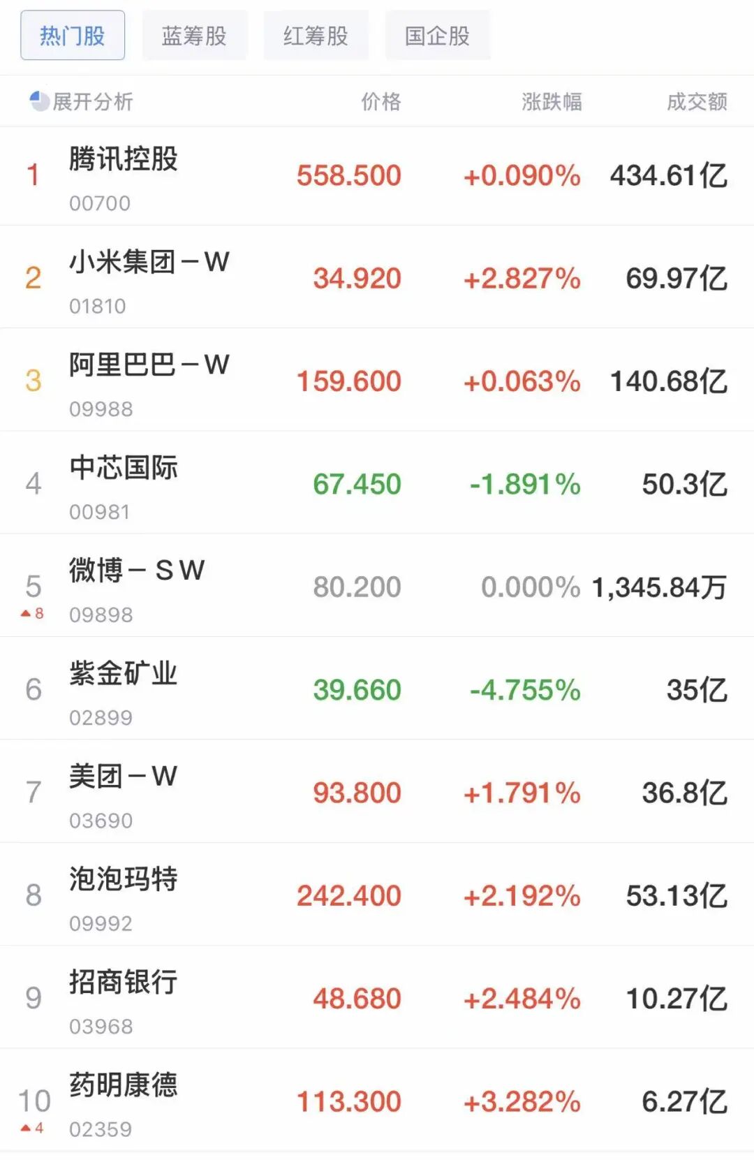 低开高走,港股三大指数全线飘红!小米、百度、美团等齐涨,黄金股跳水!南向资金净买入超249亿港元|港股收盘