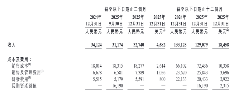 Core Insights - Baidu Group-SW reported a total revenue of RMB 32.7 billion for Q4 2025, reflecting a 5% quarter-over-quarter growth [1] - The annual revenue for Baidu in 2025 was RMB 129.1 billion, a 3% year-over-year decline, primarily due to a decrease in traditional business, partially offset by growth in core AI new businesses [1] - The revenue from intelligent cloud infrastructure for the year 2025 was approximately RMB 20 billion, representing a 34% year-over-year increase [1] Financial Performance - For Q4 2025, Baidu's revenue was RMB 32.7 billion, with a cost of sales amounting to RMB 18.3 billion, leading to a gross profit margin that reflects the company's operational efficiency [2] - The total cost of sales for the year was RMB 72.4 billion, which is a 10% increase year-over-year, attributed to rising costs associated with Baidu's core AI new businesses [2] - Research and development expenses for the year were RMB 20.4 billion, showing an 8% decrease year-over-year, mainly due to a reduction in personnel-related costs [2]