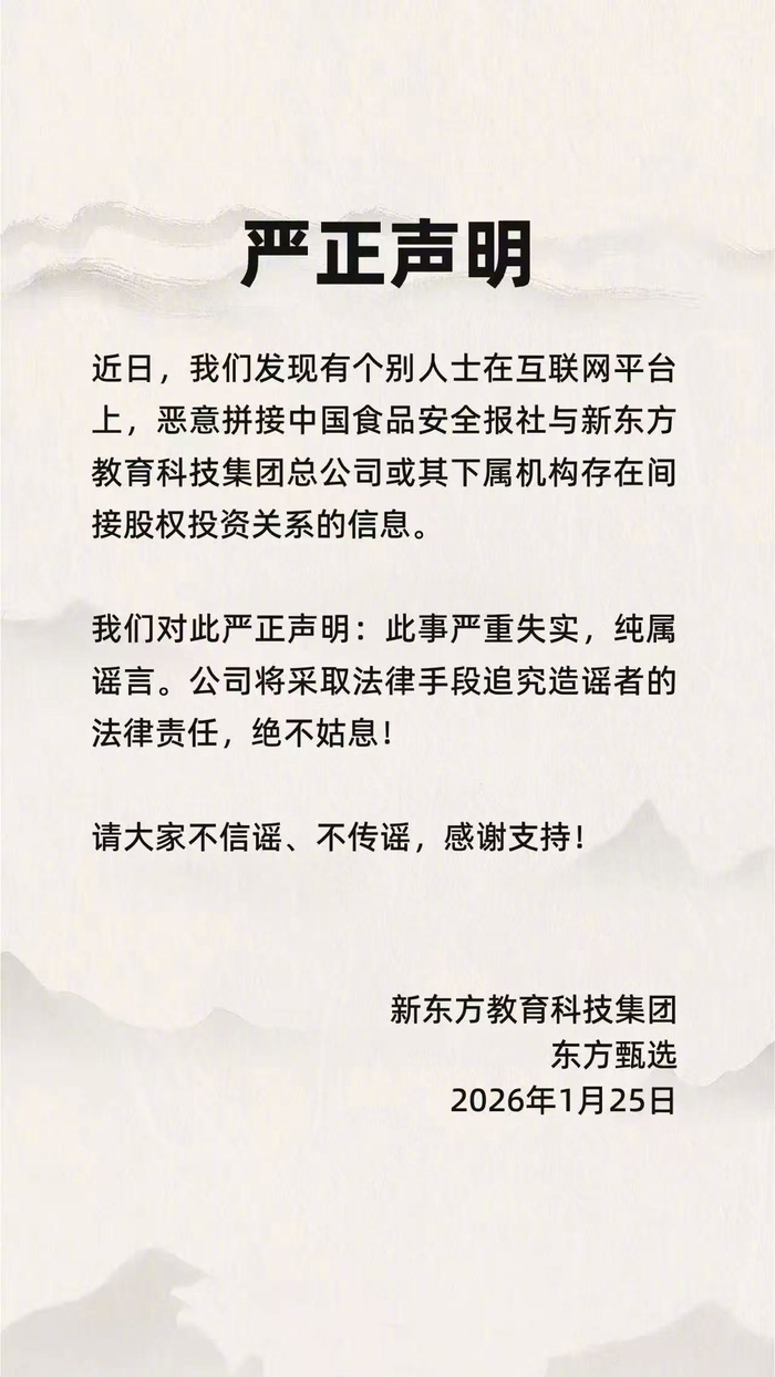 (本文来自第一财经) 1月21日,第一财经发现,多个网络社交平台出现"北京新东方退休俱乐部"账号,宣称由"俞老师"创 办,专门为50-75岁北京叔叔阿姨打造,提供本地活动、健康养生、兴趣课堂。线上课0元领取,线下课 体验价格19.9元。但需注意的是,这些新账号均未带有新东方集团官方认证标识或企业蓝V认证标识。 截至发稿,新东方集团方面暂未具体回应。(第一财经记者 吕倩) ...