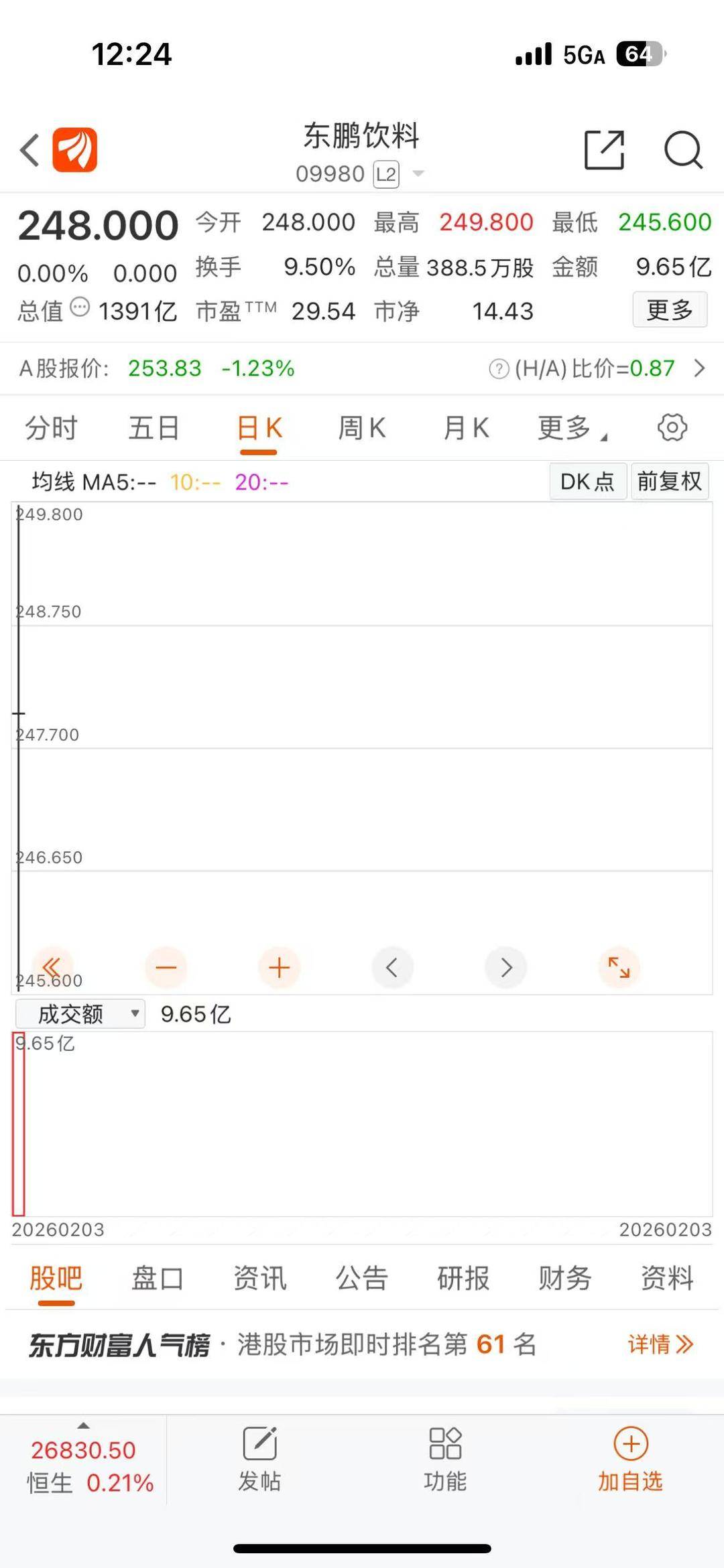 记者|刘婧汐 编辑|高梦阳 2026年2月3日,东鹏饮料(09980.HK)在香港联交所挂牌并开始上市交易,今日开盘,东鹏饮 料报248.00港元/股,市值1391.04亿港元。随后破发,最低下探至244.2港元/股。 截至收盘,东鹏饮料(605499.SH)报253.96元/股,东鹏饮料(09980.HK)报251.8港元/ 股,日内涨1.69%。 (图源:东鹏特饮微博账号) 此次港股上市,东鹏基石投资阵容豪华——包括15家全球头部机构合计认购金额超过6亿美 元,覆盖主权财富基金、国际长线基金、中资头部长线机构、私募基金及消费产业资本等多元 类型。本次15亿的发行规模(或13亿基础发行规模)中,大约有6亿4千万(将近一半)是基石 的分配。 SFC 出品丨21财经客户端 21世纪经济报道 瑞银证券全球投资银行部联席主管谌戈表示,国际资本对于东鹏项目较为关注与认可,在基石 分配上面侧重于股权基金,尤其是国际大长线基金。 "像卡塔尔(QIA)是第一次参加A+H项目的基石,第一次参与消费品行业港股基石,也是他 们历史上或者过去五年第一次参与港股IPO的基石;摩根大通资管也是历史以来第一次以基石 形式参与香港的IPO ...