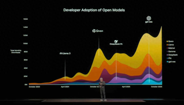 据长安街知事报道,英国《金融时报》星期五引述一份美国白宫备忘录报道,华盛顿指责中国科技巨头 阿里巴巴为中国军方针对美国境内目标的行动提供技术支持。 千问占据HuggingFace全球模型榜单前十中的七席 一个则是目前已经在硅谷蔓延的一种情绪。海外社交媒体已有人总结为一个流行词"千问恐 慌"(QwenPanic)。大意:以阿里巴巴千问大模型代表的开源模型,在成本上有优势,在开源上会获得更 大客户,而反观美国,闭源路线可能走窄,以及大力发展AI的负债隐忧浮现。这种情绪,与年初 deepseek引发的情绪是一脉相承的。它的立论基础,是以千问为代表的开源大模型正在吃下越来越大的 市场。 自2023年阿里开源通义千问大模型以来,千问Qwen全球下载量超过6亿次,衍生模型超过17万个,均超 过美国Meta Llama系列,位居全球第一开源模型。阿里千问Qwen在全球AI开源社区收获大量好评,包 括黄仁勋、马斯克、李飞飞、Airbnb CEO等众多AI圈知名人物都为千问点赞,苹果、DeepSeek、亚马 逊等众多知名科技企业都采用了Qwen模型或是基于Qwen做技术探索。 但是,这份报道完全没有具体说明涉及哪些能力或行动, ...