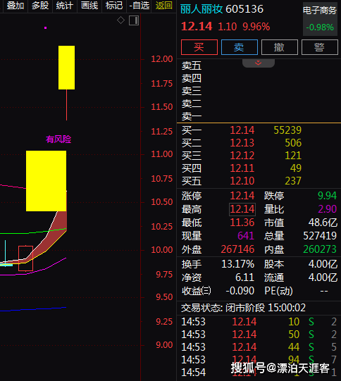 二、基本面分析 丽人丽妆(605136)公司的主营业务是从事化妆品网络零售服务商。 公司是中国知名的线上化妆品营销零售服务商。 该股强势的概念有:阿里巴巴+化妆品电商+自有品牌+抗衰 三、丽人丽妆(605136)该股近期上涨的逻辑有哪些呢? 1、阿里巴巴概念活跃!在阿里巴巴相关领域,公司的经营模式主要包括电商零售业务和品牌营销运营 服务两部分。其中,电商零售业务是公司的核心业务,合作电商平台广泛,包括传统综合性电商、内容 电商、直播电商、社群电商等,如天猫、抖音、小红书、唯品会、京东、拼多多等,其中天猫平台占比 最大。在阿里巴巴概念的带动下,相关个股迎来上涨行情。 2、电商板块活跃!在化妆品电商相关领域,公司深耕化妆品网络零售十余年,与欧美日韩等多国知名 品牌长期合作,具备全链路电商服务能力。在电商板块的带动下,相关个股迎来上涨行情。 3、公司自有品牌"玉容初""美壹堂"2024年营收同比增长超140%,成为第二增长曲线。在公司自有品牌 的刺激下,该股迎来上涨行情。 一、热门个股解读——丽人丽妆(605136) | 多股 统计 | 画线 标记 -自选 返回 | 聲加 | 丽人丽妆 605136 | 电子商务 ...