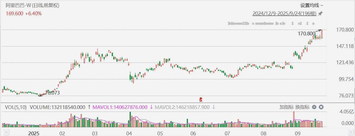 3800亿投资基础上再追加AI投入,阿里大涨超7%创近4年新高!科技女股神伍德时隔4年重新开仓,买入1630万美元阿里巴巴