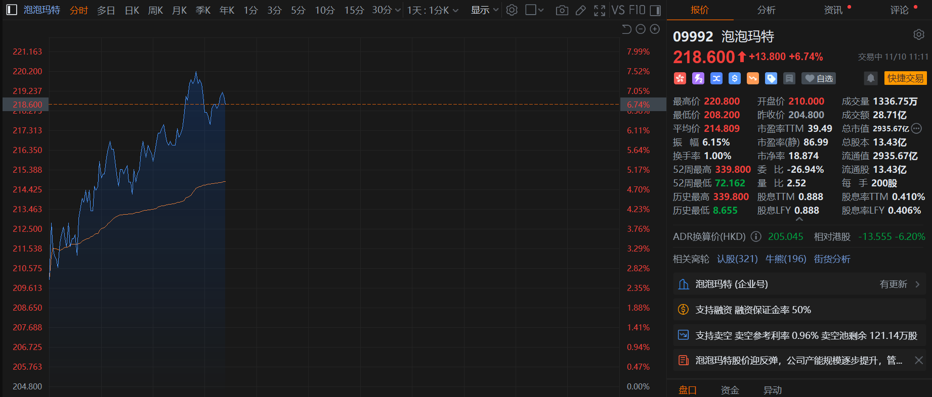 港股异动丨泡泡玛特冲高近8% 华创证券维其“强推”评级 看高目标价至345.39港元