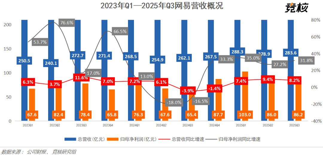 11月20日,网易披露2025年第三季度财报。公司期内净收入为284亿元,同比增加8.2%。其中,游戏及 相关增值服务业务延续强劲表现,实现净收入233亿元,同比增长11.8%,占公司总营收比重升至82%, 成为拉动业绩增长的核心引擎。此外,公司期内归属于股东的净利润为86亿元。 对比去年同期不难发现,网易游戏业务正在加速回暖。2024年第三季度,网易期内游戏业务板块净收入 为209亿元。 网易首席执行官丁磊也在当天的电话会上针对游戏研发策略、近期个别制作人离任等外界十分关注的问 题进行了回应,他表示,专注是一家公司应有的核心优势。针对近期的调整,他认为属于正常人员流 动,调整在不影响日常运营情况下进行,希望团队更加专注、高效,集中力量打造长青精品。 《梦幻西游》电脑版PCU达358万人,三季度营业成本略有增加 网易游戏第三季度业务的增长主要得益于"长青精品"的布局成效。数据显示,《梦幻西游》等多款"长 青精品"创下新高。 作为网易游戏的经典IP,自三季度起,《梦幻西游》电脑版最高同时在线玩家数(PCU)连创四次新 高,最高达358万人。网易管理层表示,该产品凭借"极其稳定的经济系统与独特且非常丰富的游戏体 ...