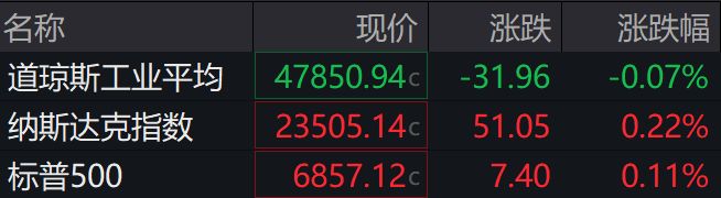 【财经日历】 摩尔线程上市 2025第二届磷锂产业高质量发展大会(贵阳,12/5-12/7) 新股申购:沐曦股份、 昂瑞微 | 名称 | 现价 | 涨跌 | 涨跌幅 | | --- | --- | --- | --- | | 道琼斯工业平均 | 47850.94c | -31.96 | -0.07% | | 纳斯达克指数 | 23505.14c | 51.05 | 0.22% | | 标普500 | 6857.12c | 7.40 | 0.11% | 当地时间周四,美股主要股指整体持平,标普500指数和纳指连续三个交易日收高。截至收盘,道指跌 0.07%,标普500指数涨0.11%,纳指涨0.22%。小盘股继续领跑,罗素2000指数收涨0.76%至2531.16 点,创下历史新高。 科技板块表现分化。Meta涨3.43%,有消息称Meta计划削减多达30%的元宇宙(Metaverse)预算,刺激 其股价走强;亚马逊透露正在与美国邮政署商讨未来合作安排,股价承压下跌1.41%;英伟达涨 2.11%,特斯拉涨1.74%,微软涨0.65%,谷歌A跌0.63%,苹果跌1.21%。 纳斯达克中国金龙指数收涨0.39%。 ...