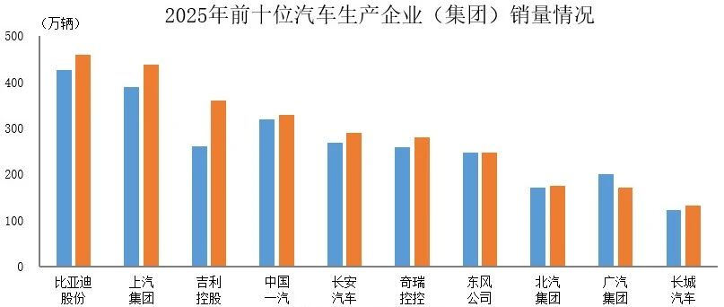 数据简报 | 2025年前十位汽车生产企业(集团)销售情况简析