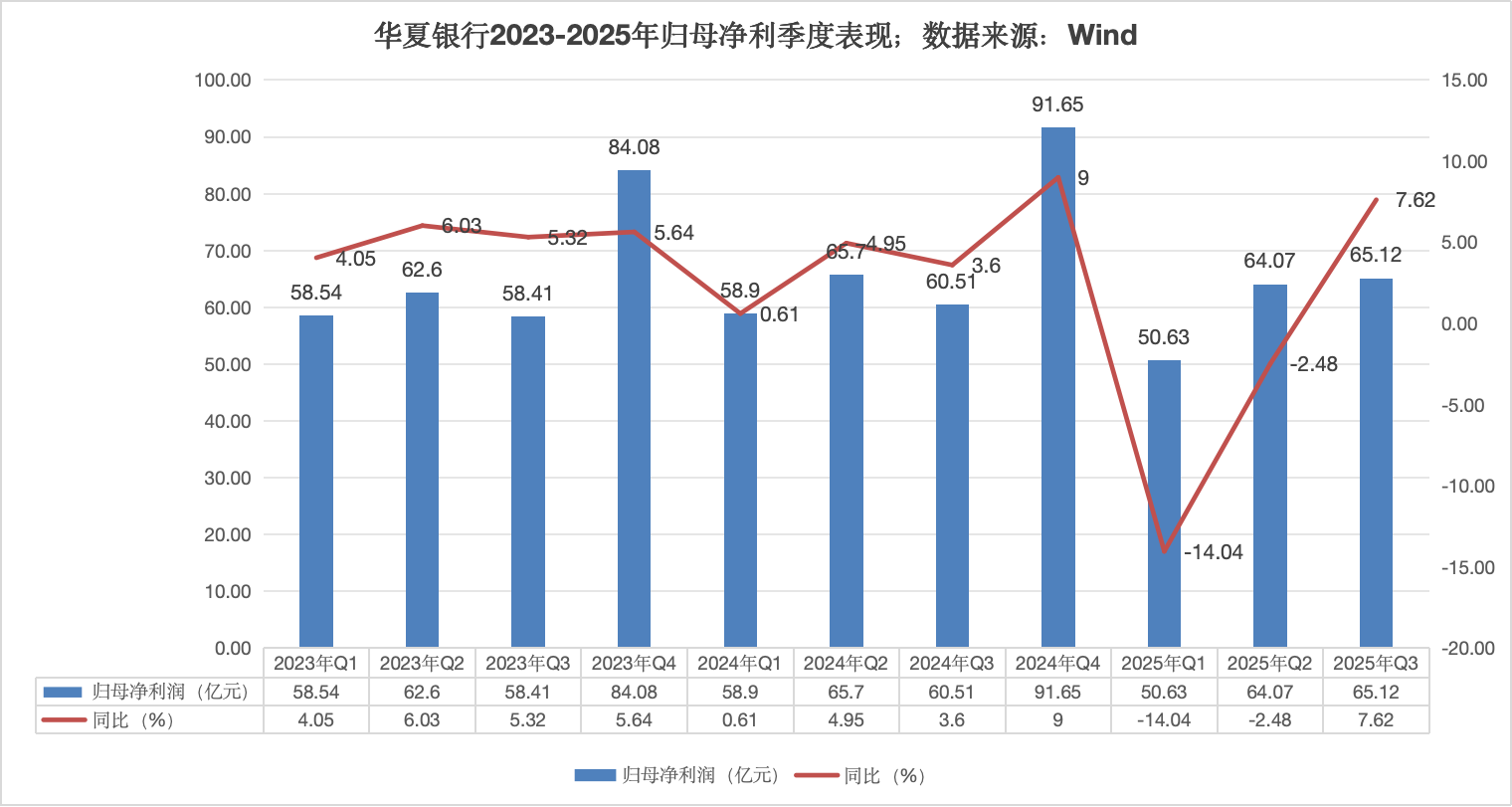 商业银行洗牌的大格局下,城商行的乘势而上,正在加重末位股份行的增长焦虑。 摆在华夏银行面前的是一道两难的选择题: 华夏银行近日披露前三季度实现营收、归母净利分别达648.81亿元、179.82亿元,对比去年同期下滑8.79%、2.86%。 A股42家上市银行中,华夏银行两项数据增速排名分别是第40位、第37位,增势疲态尽显、落后于绝大部分银行。 2025年以来,座次的移位成为商业银行的主旋律,不论是农行对工行市值的反超、或是江苏银行对北京银行规模的反超,都释放出"强者未必恒强"、核心优 势重塑的信号; 如今这样的趋势,已经从同类型商业银行之间,蔓延到城商行与股份行之中。 华夏银行业绩承压的前三季度,宁波银行、北京银行、上海银行、南京银行4家城商行已乘胜追击,完成了利润的弯道超车。 截至三季度末,华夏行的资产质量表现欠佳,其以1.58%的不良率为A股股份行最差水平。 如果舍弃眼前的风控换取增长,未来一旦出现资产质量风险,势必会遭受更严重的反噬; 如果严抓资产质量放缓增速,身后虎视眈眈已久的城商行们又可能一拥而上,进一步蚕食该行在京津冀、长三角等主战场的市场份额。 防御压力之下,华夏银行在10月发布多条人事变动, ...