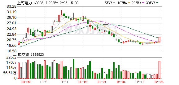 12月19日,上海电力盘中上涨2.04%,截至11:05,报19.49元/股,成交5.04亿元,换手率0.92%,总市值 549.85亿元。 资金流向方面,主力资金净流入2943.69万元,特大单买入4593.52万元,占比9.12%,卖出3580.47万 元,占比7.11%;大单买入1.18亿元,占比23.40%,卖出9855.09万元,占比19.57%。 上海电力今年以来股价涨119.24%,近5个交易日跌3.90%,近20日跌18.79%,近60日跌1.22%。 今年以来上海电力已经7次登上龙虎榜,最近一次登上龙虎榜为10月10日。 上海电力所属申万行业为:公用事业-电力-火力发电。所属概念板块包括:清洁能源、绿色电力、央企 改革、超超临界发电、证金汇金等。 截至9月30日,上海电力股东户数18.95万,较上期增加31.64%;人均流通股14884股,较上期减少 18.12%。2025年1月-9月,上海电力实现营业收入321.54亿元,同比减少1.26%;归母净利润30.50亿元, 同比增长24.04%。 分红方面,上海电力A股上市后累计派现68.21亿元。近三年,累计派现14.51亿元。 机构持仓方面 ...