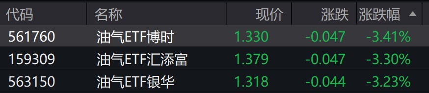 油气概念股走低,油气相关ETF跌超3%