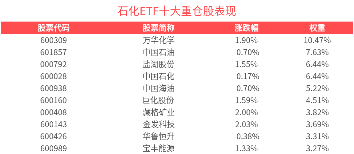 石化ETF(159731),场外联接(华夏中证石化产业ETF发起式联接A:017855;华夏中证石化产业ETF发起式联接C:017856)。 天风证券分析称,化工行业新增产能进入释放阶段,2026年供需逆转可期。2022Q4在建工程同比增速达到自2012Q3以来的最高点,化工行业进入新一轮资 本开支密集期;增速在23Q1开始回落,随后在建工程同比增速震荡下行,25Q1则自18年以来首次落入负数区间(全体上市公司)。从全行业数据看,固定 资产完成同比增速在25年6月进入负值区间,略落后于上市公司数据,而根据历史情况,化工PPI往往滞后期12个月左右转正,本轮PPI逐步进入周期低点, 2026-2027年"反内卷"、"稳增长"等系列政策助推下经济走出谷底、企业盈利底部确认概率较高。 以上内容与数据,与有连云立场无关,不构成投资建议。据此操作,风险自担。 石化ETF(159731)紧密跟踪中证石化产业指数,数据显示,截至2025年12月31日,中证石化产业指数(H11057)前十大权重股分别为万华化学、中国石油、中 国石化、盐湖股份、中国海油、藏格矿业、巨化股份、恒力石化、华鲁恒升、宝丰能源,前十大权重股合计占比5 ...