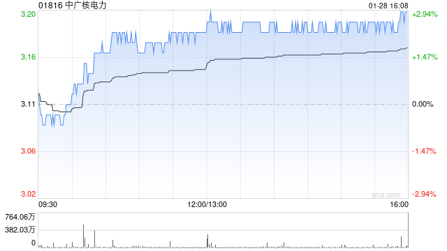 中广核电力获中信证券-开元单一资产管理计划增持1293.2万股 每股均价约3.12港元