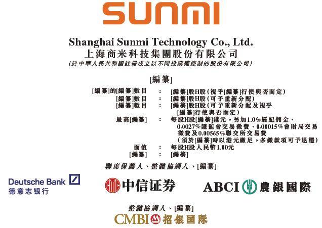 | ■景 | [编纂]的编纂 數目 | [编纂]股H股(視乎[编纂]行使奥否而定) | : | | | --- | --- | --- | --- | --- | | 编纂 数目 | | [编纂]股H股(可于重新分配) | 编纂 数目 | [编纂]股H股(可于直新分配及視乎 | | [编纂]行使奥否面定) | 每股H股[编纂]港元,另加1.0%經紀佣金、 | 最高 编纂 | : | | | 0.0027%證監會交易繳費、0.00015%會財局交易 | 微覆及0.00565%哪交所交易發 | | | | | (須於 編纂 時以港元繳足,多繳款項可予退還) | 面值 | 每股H股人民幣1.00元 | | | | 罐溪 | : | 【编纂】 | 聯席保薦人、整體協調人、[编纂] | | | Deutsche Bank 14 | ABCI(J農銀國際 | ●中信证券 | 德意志银行 | | | 整體協調人·「编纂] | | | | | 2025年2月15日,来自上海杨浦区的上海商米科技集团股份有限公司Shanghai Sunmi Technology Co., Ltd. (以下简称"商米科技")在港交所 披露聆讯后的 ...