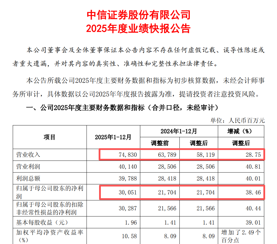 净利超300亿元!中信证券2025年业绩快报出炉!
