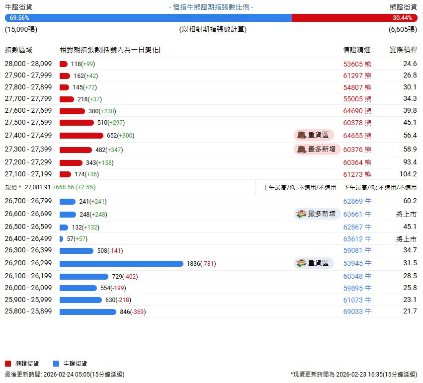 恒指牛熊街货比(70:30)︱2月24日