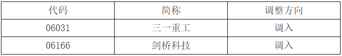 | 代码 | 简称 | 调整方向 | | --- | --- | --- | | 06031 | 三一重工 | 调入 | | 06166 | 剑桥科技 | 调入 | 深交所11月24日公告 ,港股通标的证券名单发生调整并自2025年11月24日起生效,调入三一重工、剑桥科技。 ...