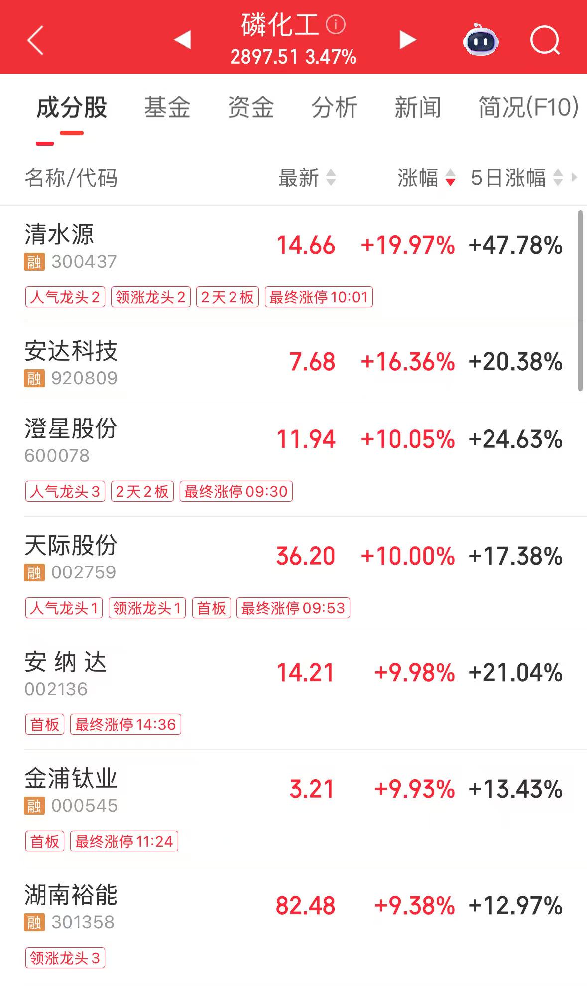 磷矿石紧俏 磷化工龙头股2天20cm涨停,这些股或受益