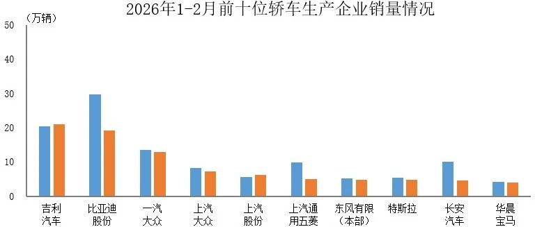 数据简报 | 2026年1-2月前十位轿车生产企业销售情况简析