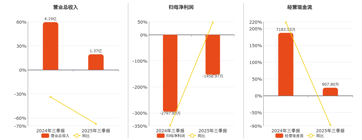 长江投资(600119.SH):2025年三季报净利润为-1458.97万元,同比亏损缩小