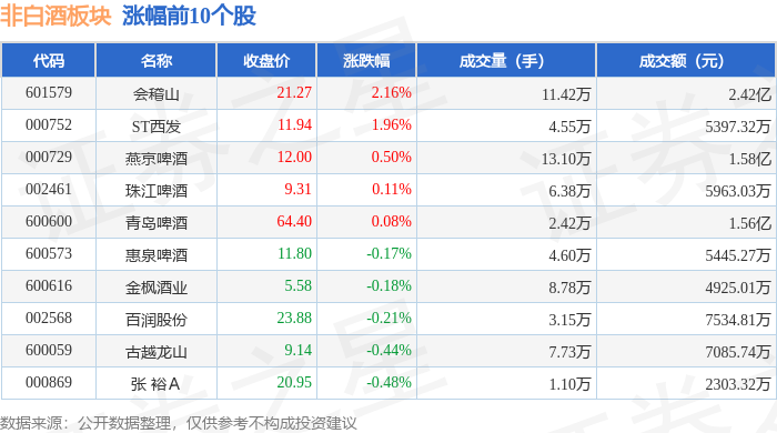 非白酒板块11月26日涨0%,会稽山领涨,主力资金净流入1435.5万元