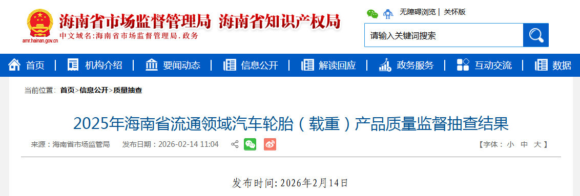 2025年海南省流通领域汽车轮胎(载重)产品质量监督抽查结果公布
