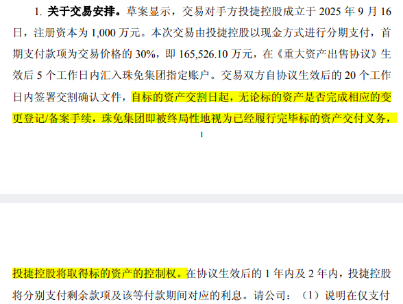 11月20日晚间,拟55.18亿元甩卖亏损地产业务的免税行业龙头公司珠免集团(600185)(前身"格力地 产",5月8日证券简称正式变更为"珠免集团")公告披露,公司收到上海证券交易所《关于对珠海珠免 集团股份有限公司重大资产出售暨关联交易草案的问询函》。 根据10月21日晚间公告,珠免集团计划以现金方式向关联方珠海投捷控股有限公司出售子公司珠海格力 房产有限公司100%股权,交易价格为55.18亿元,本次交易构成重大资产重组。 值得一提的是,这一动作距离珠免集团2024年12月31日完成重大资产置换,过去了近10个月时间。在此 前的业绩会上,珠免集团管理层承诺,将在"五年内逐步去化存量房地产业务并整体退出"。此次转让格 力房产100%股权,也是珠免集团兑现此前承诺的重要一步。 读创财经注意到,珠免集团急于剥离地产业务的背后,是持续亏损的业绩压力。 草案显示,交易对手方投捷控股成立于2025年9月16日,注册资本为1000万元。本次交易由投捷控股以 现金方式进行分期支付,首期支付款项为交易价格的30%,即165,526.10万元,在《重大资产出售协 议》生效后5个工作日内汇入珠免集团指定账户。交易双方自协议 ...