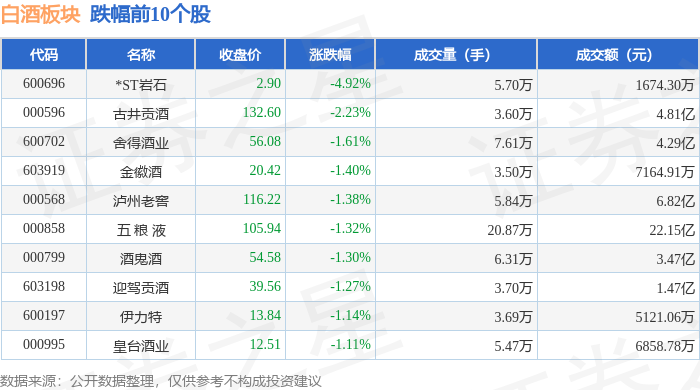 白酒板块12月31日跌1.01%,*ST岩石领跌,主力资金净流出15.73亿元